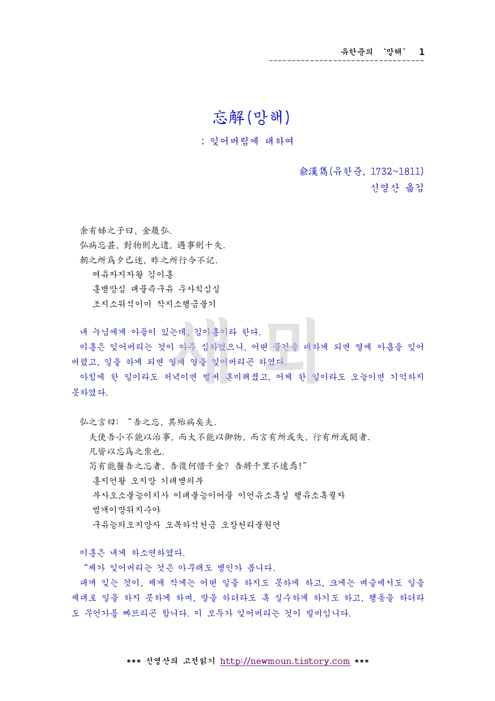 '고전 풀어 읽기 > 한문산문' 카테고리의 다른 글