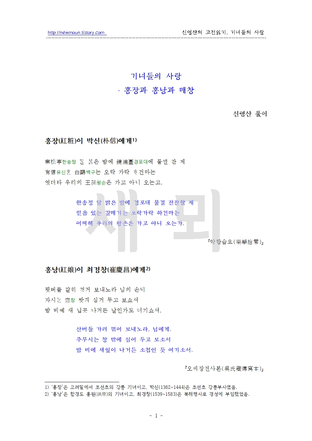 | 기녀들의 시조 - 구지, 문향, 금홍, 소백주, 평안기 (0) | 2025.09.29 |