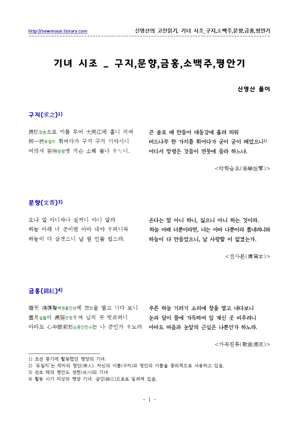 | 기녀들의 시조 - 홍장, 홍낭, 매창 (0) | 2025.09.28 |