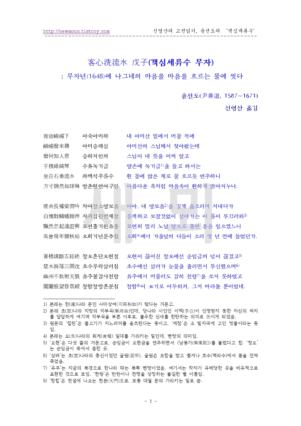 ; 무자년(1648)에 나그네의 마음을 마음을 흐르는 물에 씻다