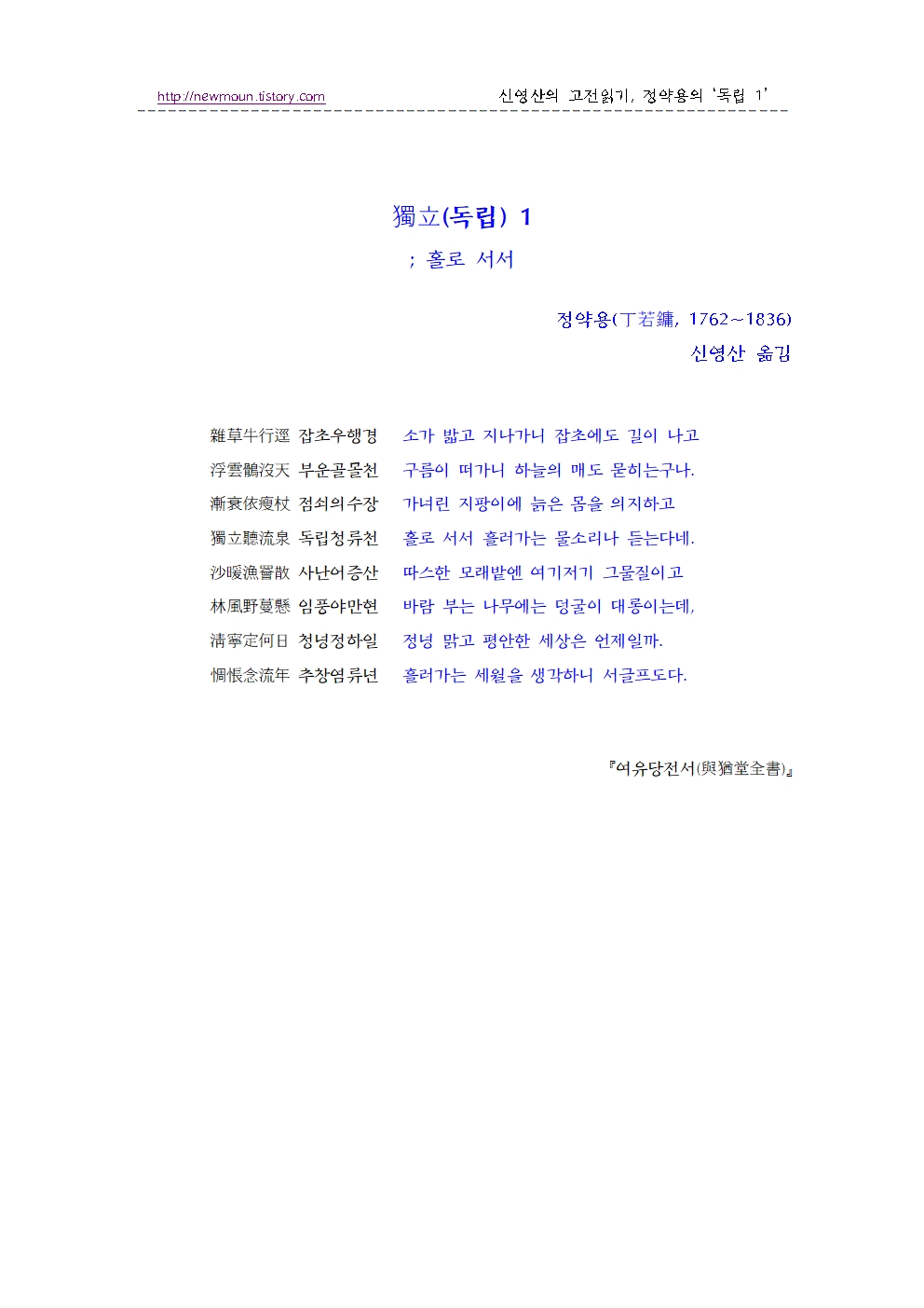 | 정약용의 한시 '독립(獨立)_2' 원문과 풀이 (0) | 2026.03.02 |