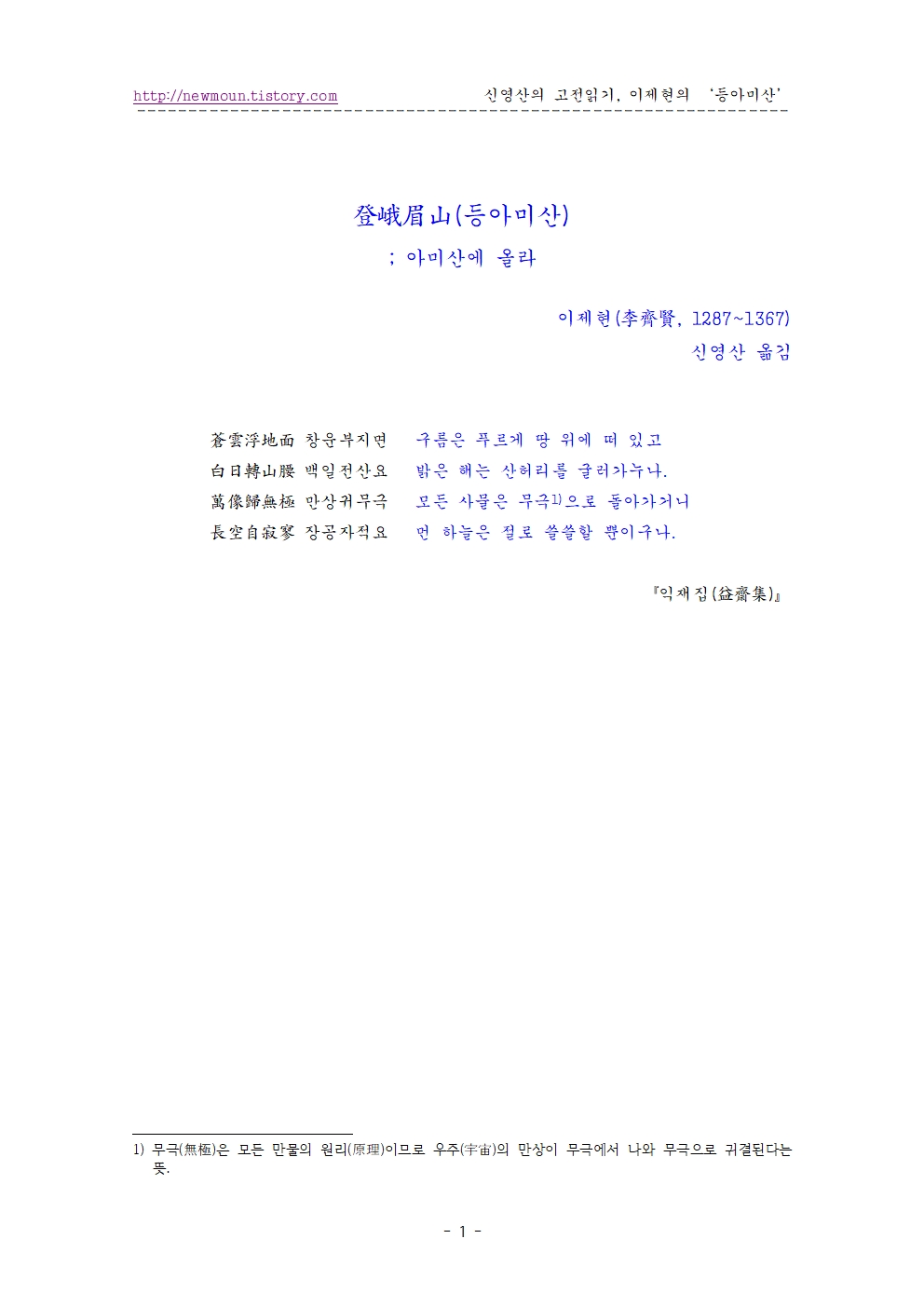 | 이제현의 한시 '냉천정(冷泉亭)' 원문과 풀이 (0) | 2026.03.19 |