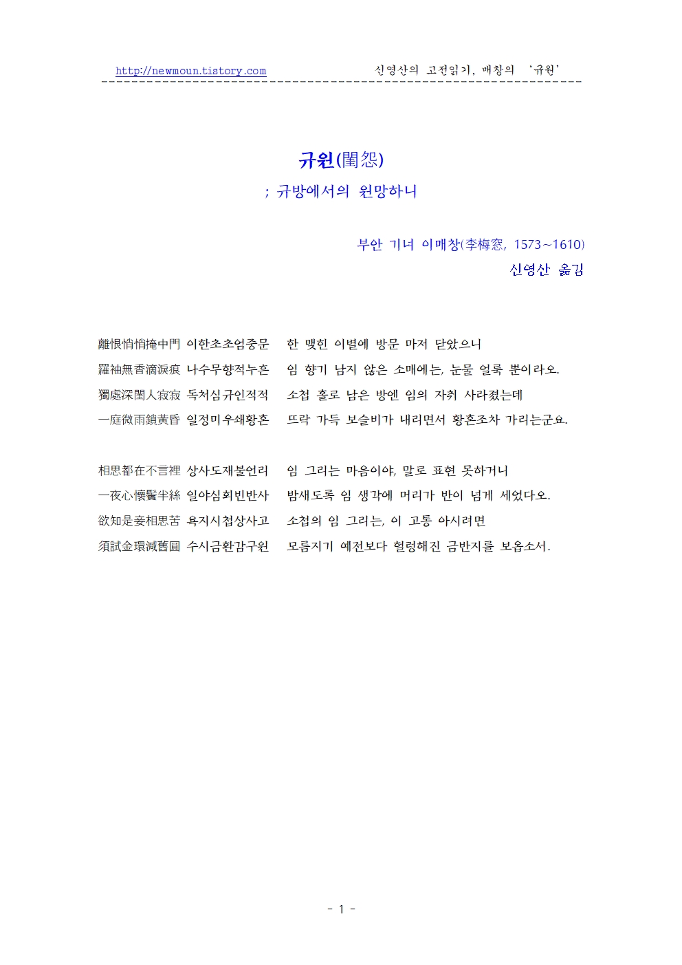 '고전 풀어 읽기 > 여류한시' 카테고리의 다른 글
