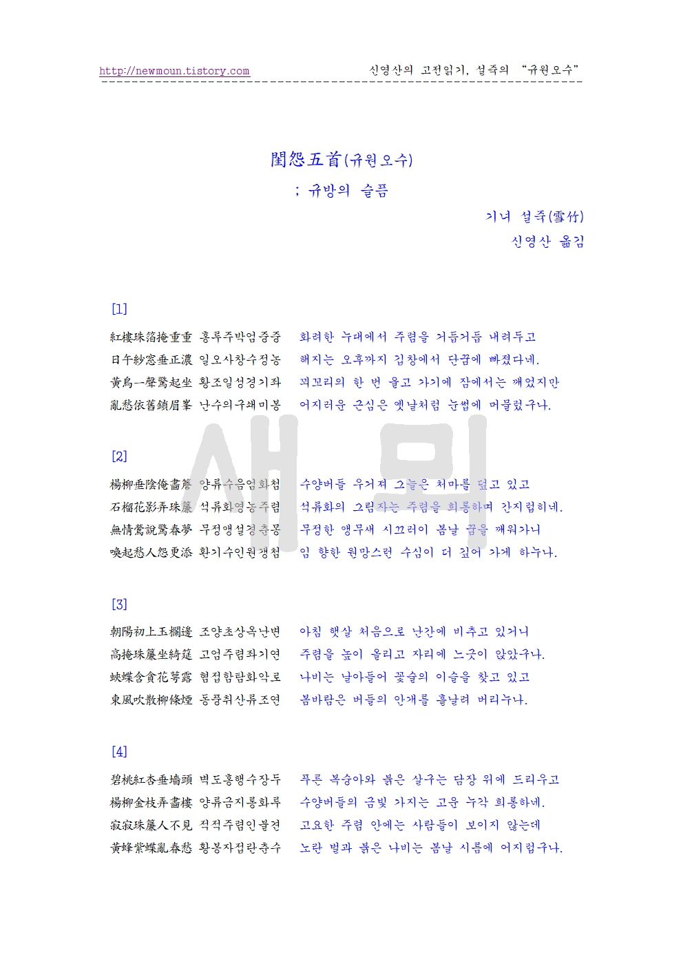 | 기녀 설죽의 한시 '빈녀(貧女)' 원문과 풀이 (2) | 2025.08.07 |