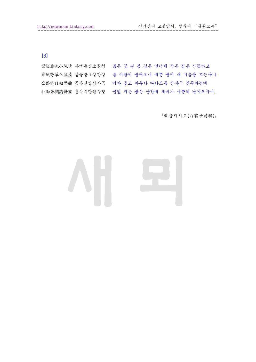 | 기녀 설죽의 한시 '화증백설산인(和贈白雪山人)' 원문과 풀이 (1) | 2025.08.09 |
